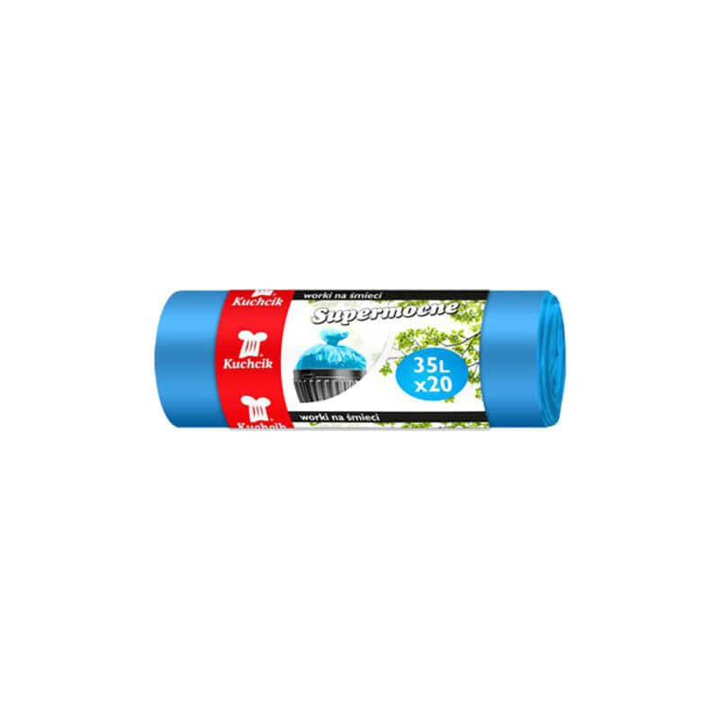 šiukšlių maišai Kuchcik Mėlynos spalvos 35 L 20 vnt 13 mikronų storio Pakuotėje 50 rul.