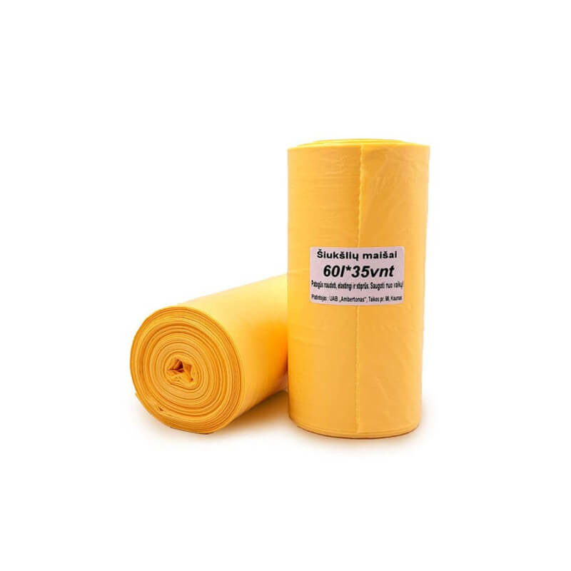 Šiukšlių maišai Geltonos spalvos 60 L 35 vnt 20 mikronų storio Pakuotėje 33 rul.