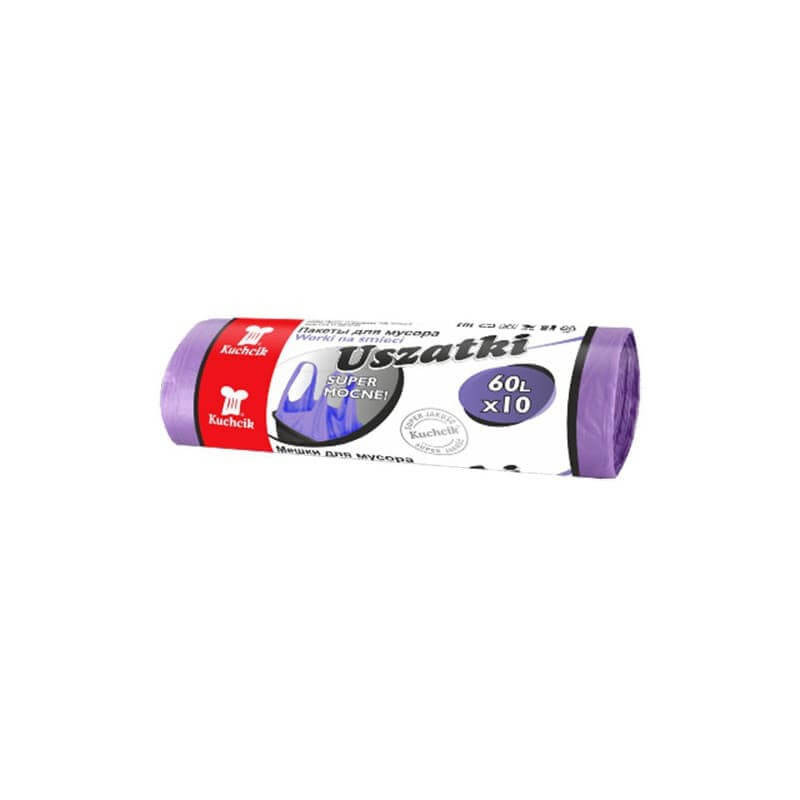 Šiukšlių maišai su rankenomis Kuchcik violetiniai 13 mikronų, 60L, 10vnt