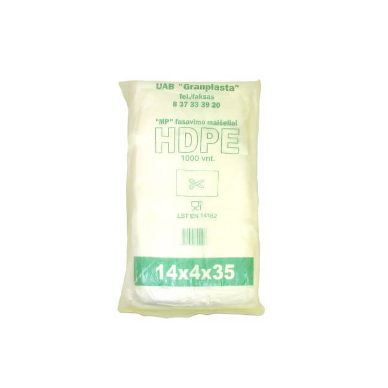 Fasavimo maišeliai HDPE 14/4x35cm 8 mikronai 1000 vnt Pakuotėje yra 15 x 1000 vnt