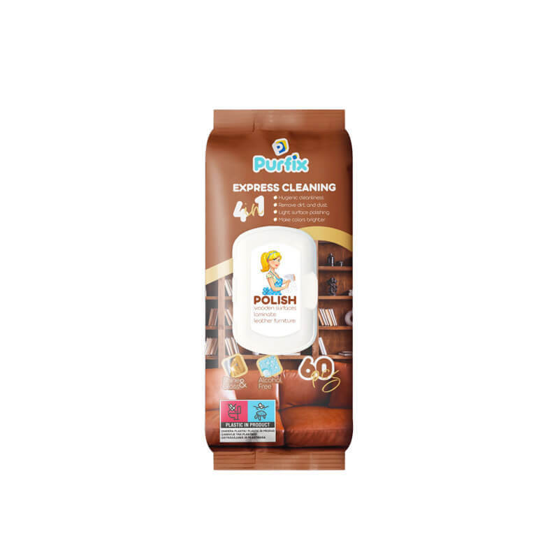 Drėgnos servetėlės baldams valyti Purfix 60vnt Drėgnos servetėlės laminato, medinių paviršių i...