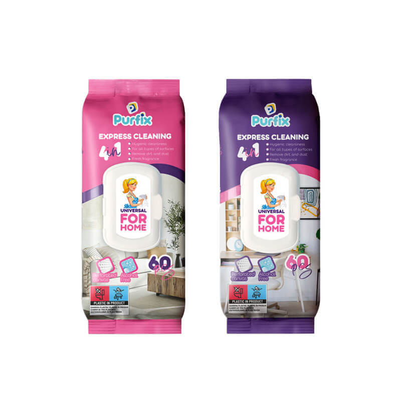 Drėgnos servetėlės įvairiems paviršiams Purfix 60vnt Drėgnos servetėlės valymui pagamintos iš ...