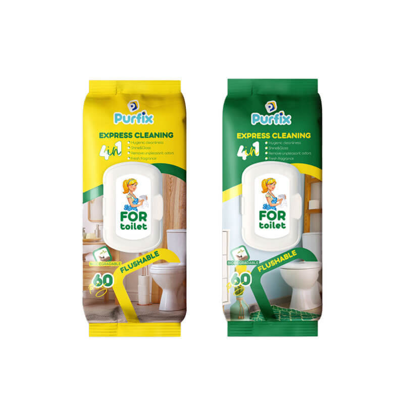 Drėgnos servetėlės WC priežiūrai pagamintos iš biologiškai skaidžios medžiagos, todėl po valymo jas galima nuleisti į tualetą.