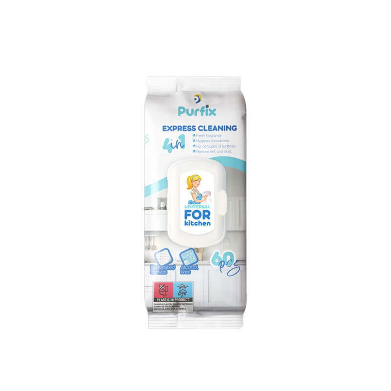 Drėgnos servetėlės virtuvės paviršiams valyti Purfix 60vnt