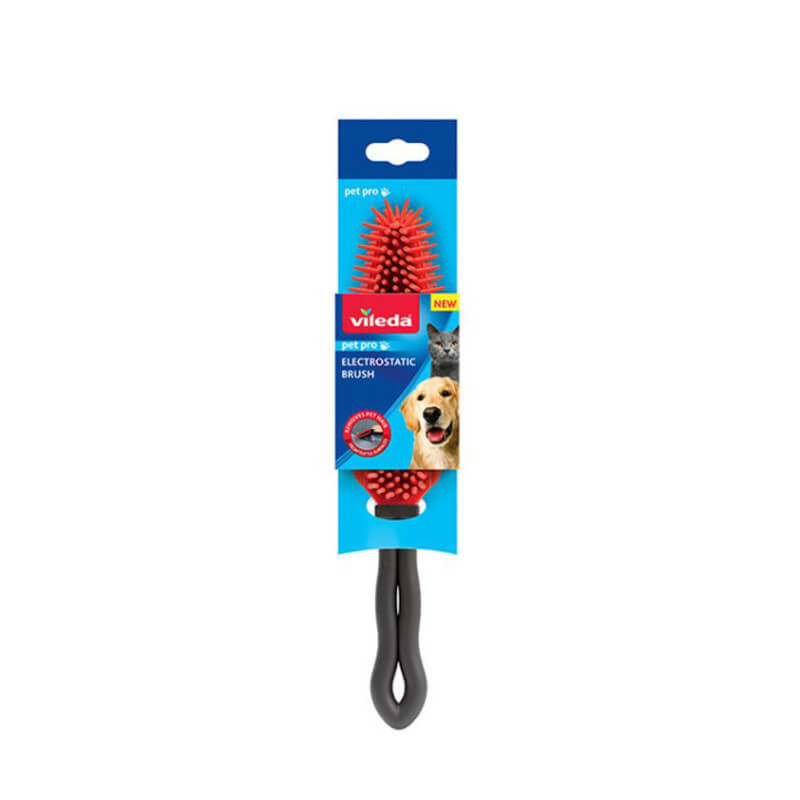 Elektrostatinis šepetėlis Vileda Pet Pro skirtas lengvai, greitai ir švelniai pašalinti naminių gyvūnėlių plaukus nuo minkštų paviršių. Dėl elektrostatinio poveikio švelnūs šereliai be vargo pritraukia gyvūnų plaukus nuo visų minkštų paviršių, tokių kaip kilimai, sofos, automobilio sėdynės. Šereliai pagaminti iš minkšto ir lankstaus silikono. Ergonomiškos formos rankena ledžia patogiai naudoti šepetėlį. Panaudoję šepetį, galite jį tiesiog nuplauti po tekančiu vandeniu ir naudoti vėl.