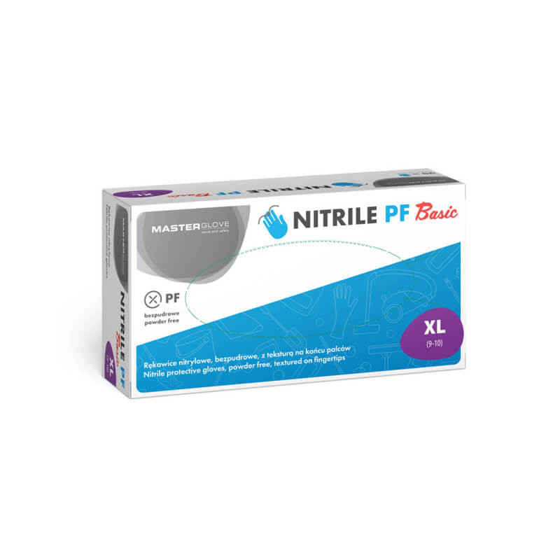 Vienkartinės nitrilinės pirštinės Master Glove PF Basic XL dydis, mėlynos spalvos 100vnt
