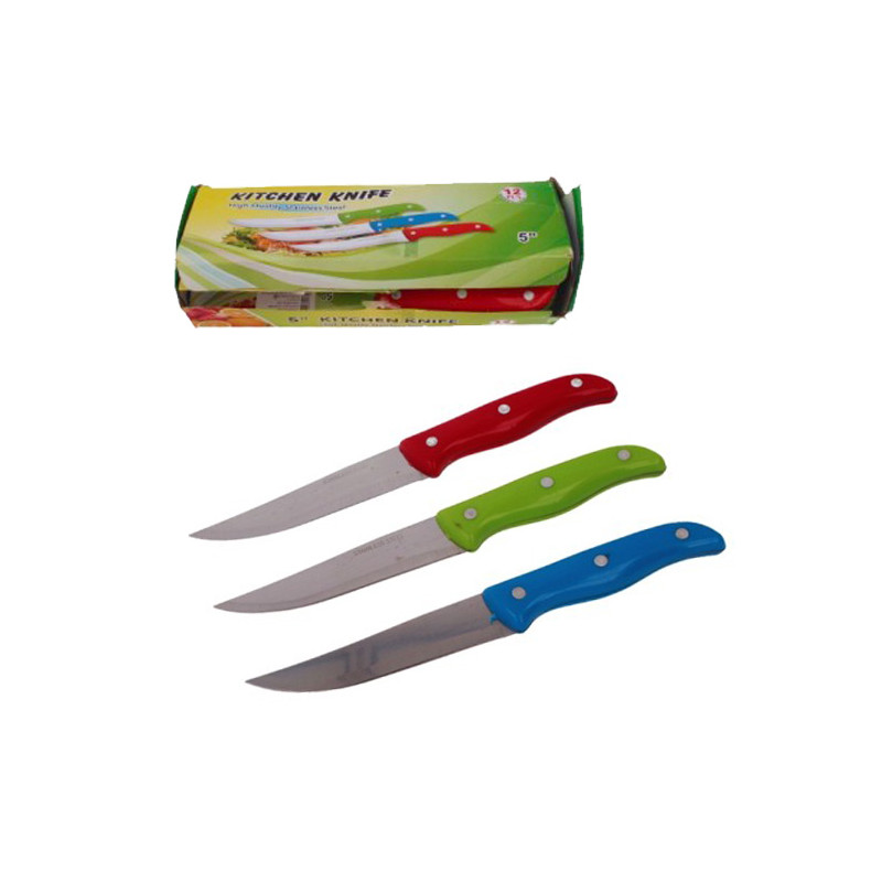 Virtuvinis peilis 5'' Ašmenų ilgis apie 13cm Įvairių spalvų rankenos. Parenkama atsitiktine tva...