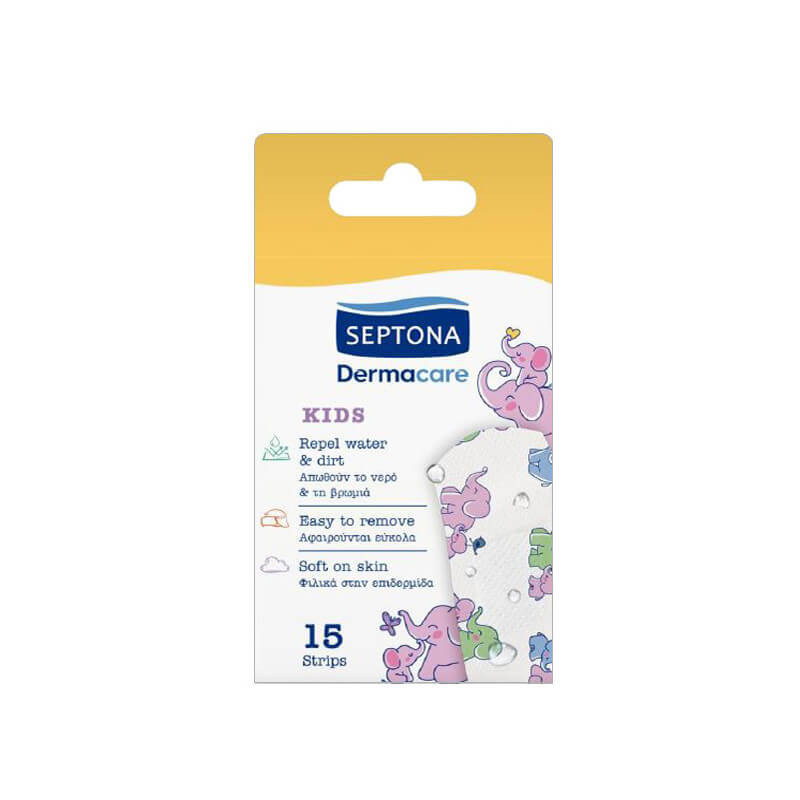 Septona vaikiški pleistrai atsparūs vandeniui 15 vnt Skirti apsaugoti žaizdą nuo nešvarumų ir ba...