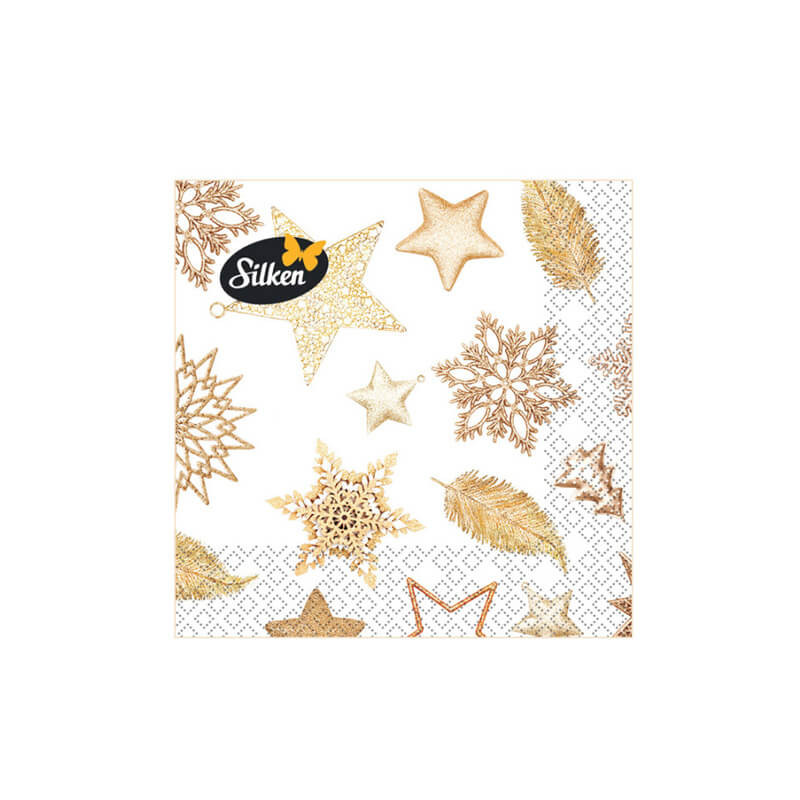Stalo servetėlės Auksiniai papuošimai 33x33cm 3 sluoksniai 18vnt