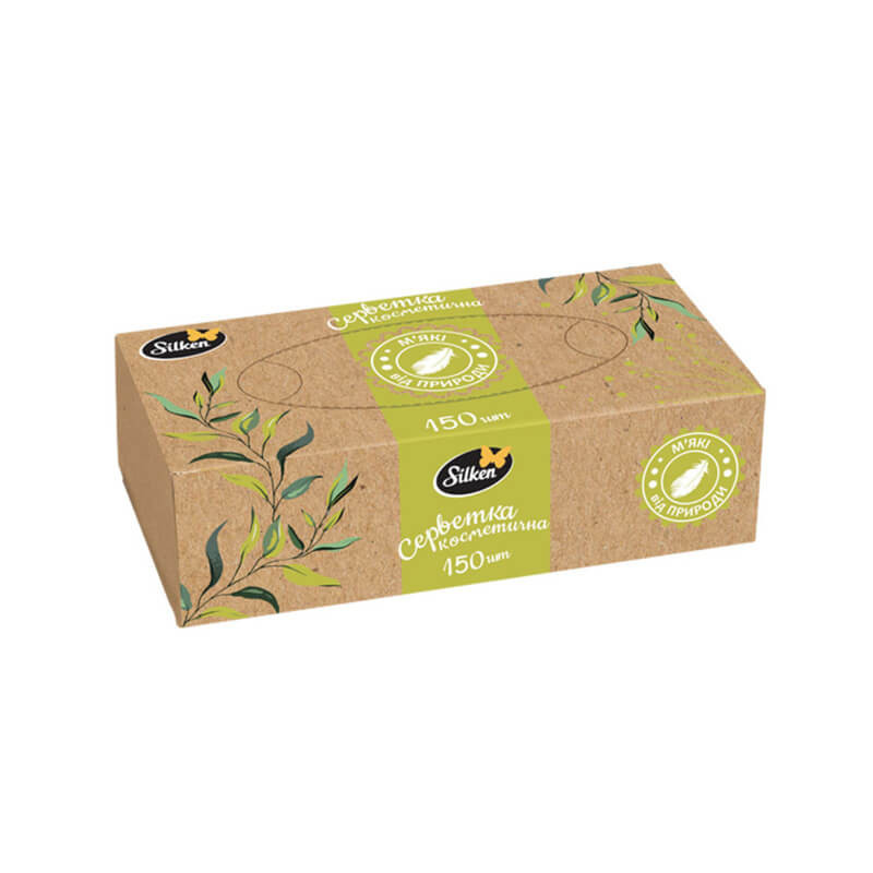 Servetėlės dėžutėje Silken 150 vnt 2 sluoksniai Lapelio išmatavimai: 20 x 19,5 cm 100% celiu...