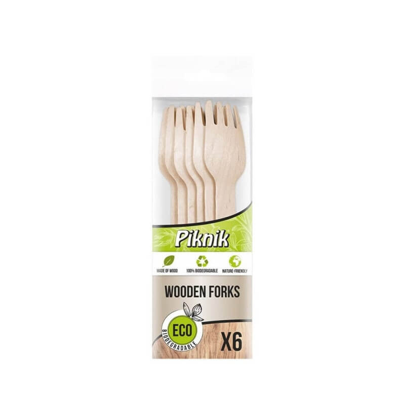 Vienkartinės medinės šakutės Piknik ECO 6 vnt 1 pakuotė