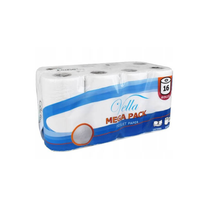 Tualetinis popierius VELLA MegaPack 17 metrų, 150 lapelių, 16 ritinėlių, 2 sluoksniai, celiuliozė