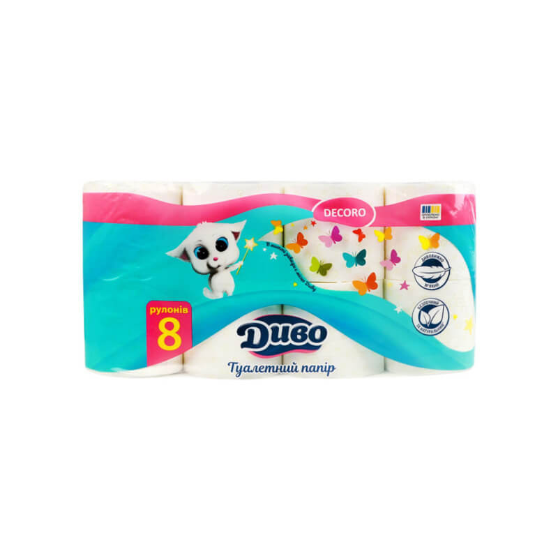 Tualetinis popierius DIVO Decoro 140 lapelių, 8 ritinėliai, 2 sluoksniai, celiuliozė