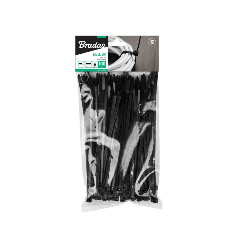Lengvai surišami nailoniniai dirželiai laidams juodos spalvos 3,6x200mm 100vnt
