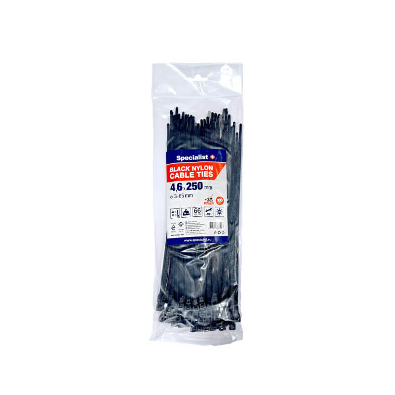 Lengvai surišami nailoniniai dirželiai juodos spalvos 4,6x250mm 100vnt