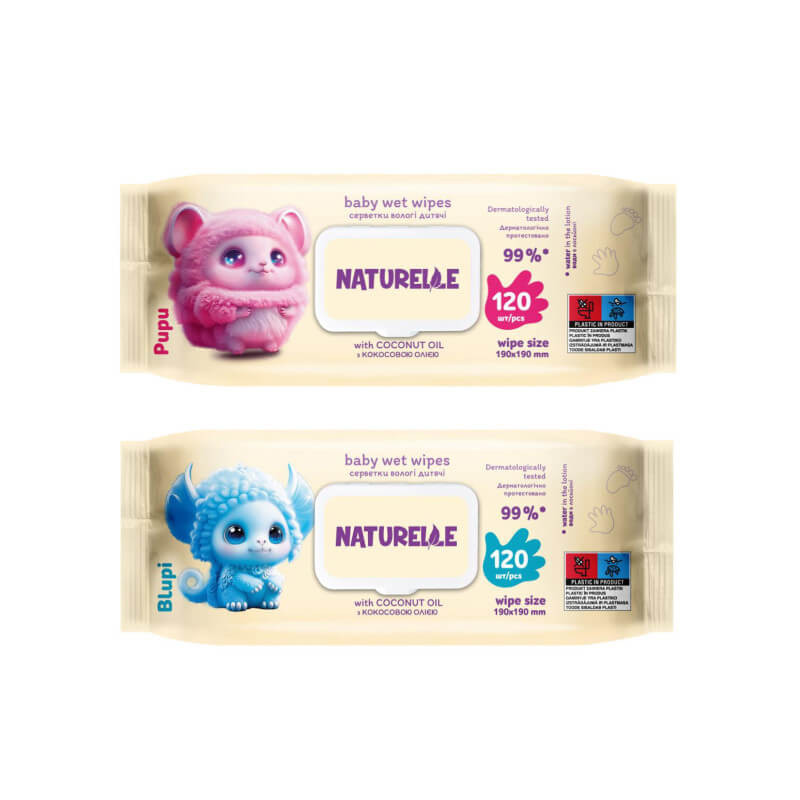 Drėgnos servetėlės vaikams Naturelle su kokosų aliejumi 120vnt Drėgnos servetėlės su kokoso alie...